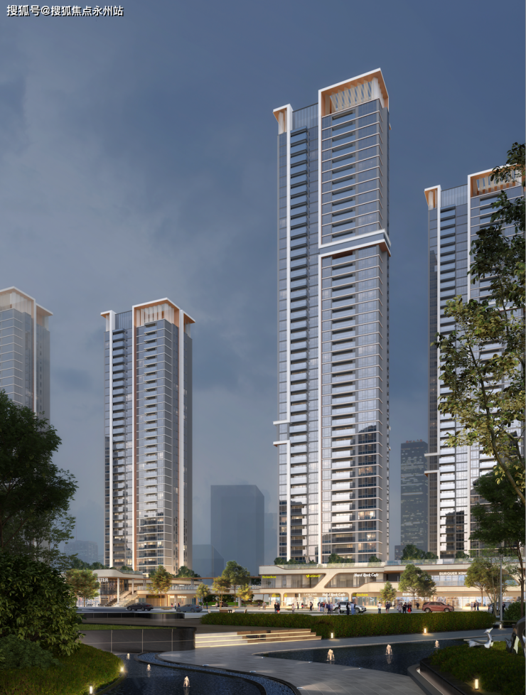园林细节非常考究,内部运用叠级花园的手法,外围设计了宽约30米(为建筑尺寸)的线性园林,打造层次多元化立体园林。