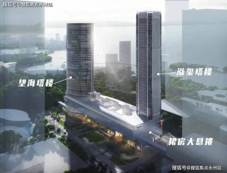其中泓玺大厦建筑高度为194.4米,装饰总高度为202米/50F,总建筑面积约10.44万㎡。