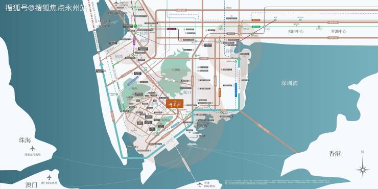这一地理位置使其承接深圳湾、太子湾、前海湾、珠江口四湾资源辐射,聚合湾区、特区、示范区、自贸区。