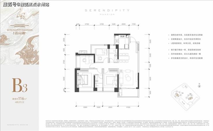 116㎡4房2卫(东区):竖厅设计,开间达3.7米;户型还是做的很不错的