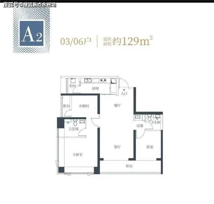 A2户型对称度没那么高,但有宽景阳台,次卧是个矩形连接阳台。两个户型的格局及功能间布局都没啥问题,主要是129㎡搞个三房,实用性就一般。
