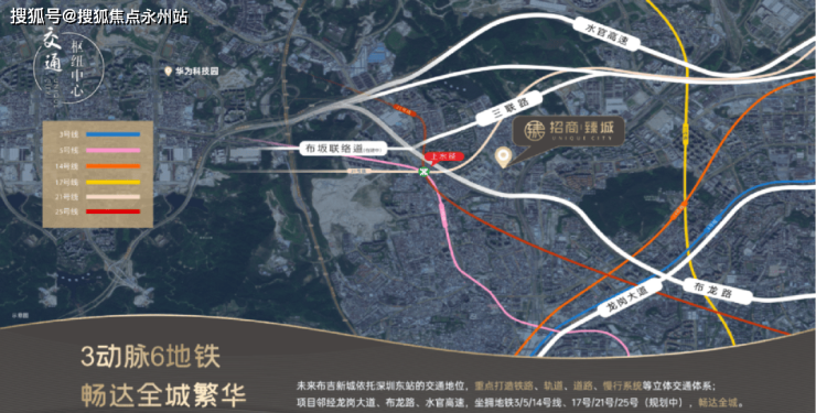 招商臻城位踞深圳中轴之上,经由布坂联络道(在建中)连通“华为工作-生活新中轴”。