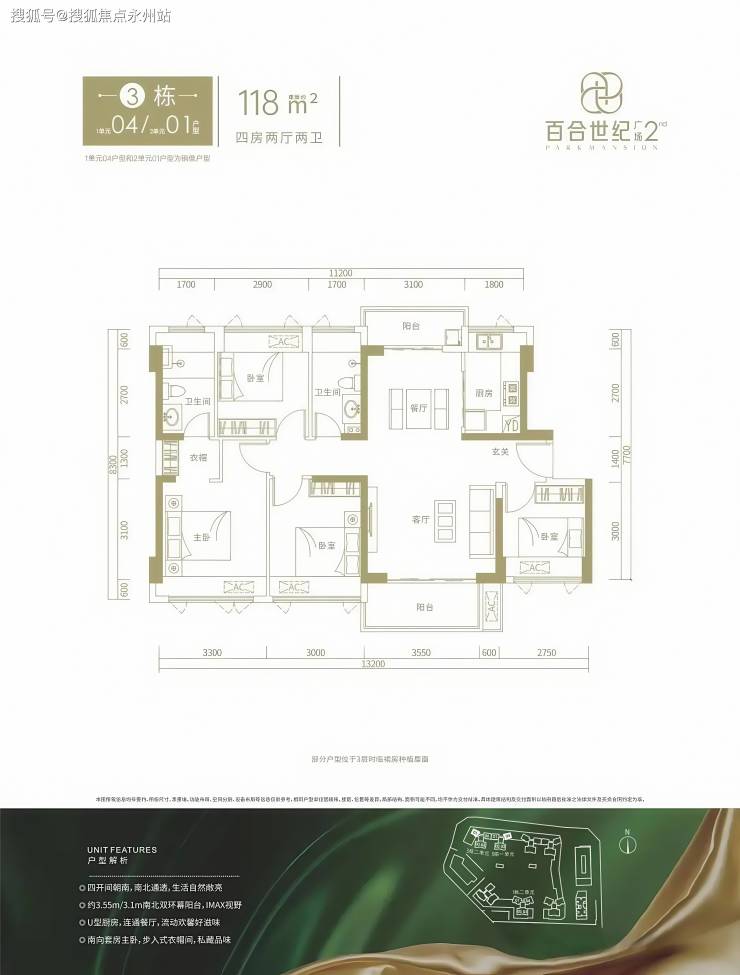 景观偏好:3栋1单元04户型(118㎡)可俯瞰园林泳池,1栋2单元01户型(143㎡)可远眺荔山公园。