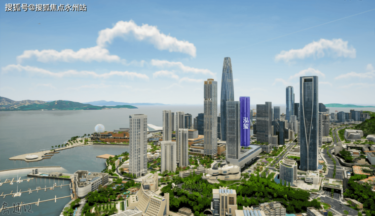 项目由国际知名建设事务所OMA主创设计,以“一湾三坊城中城”概念打造,汲取山、海、城三大元素,构建高端“居住坊”、“商业坊”“邮轮坊”形成“独一无二的都市港湾”、配置全方位城市配套,成就高端元素集萃纷呈的“城中之城。