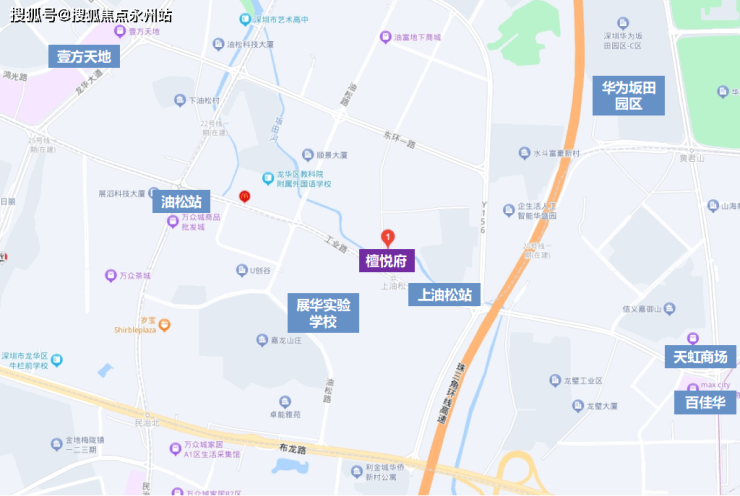 檀悦府由合正集团打造,位于龙华区龙华街道油松社区民望路与骏龙路交汇处,地处龙华国际商圈,坂田华为基地与富士康科技园三角核心区,直线距离不到1公里。