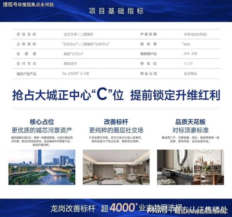 瀚府作为合正方洲的二期住宅产品,延续了大盘的规划优势,在占地面积、容积率、户型规划等核心指标上均有明确数据,具体参数如下: