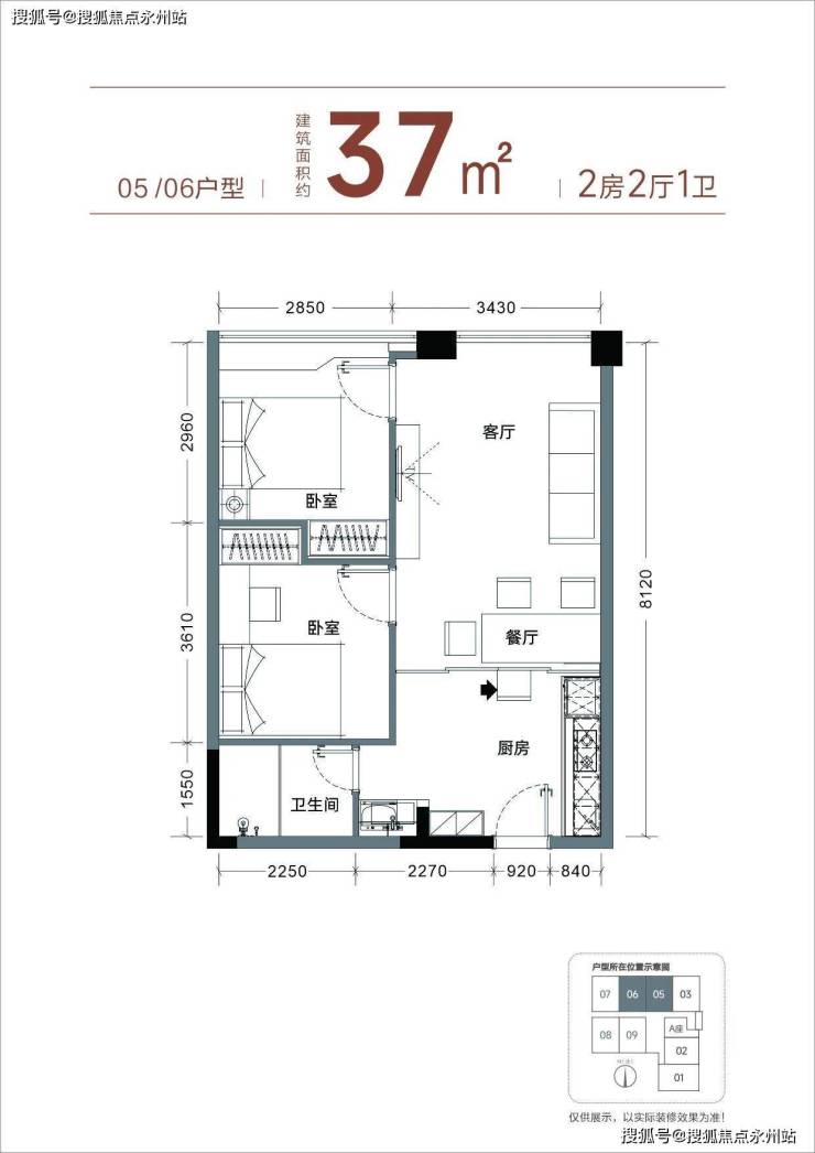 主力为37㎡两房,实际室内实用面积54-63㎡,实际使用率达145%-170%