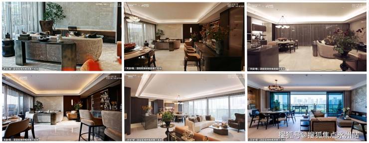 项目以港式社区理念打造多重归家礼序,公区质感和豪华感营造的都比较突出,采用大量石材、铝材、造型工艺,配置超宽社区门厅、14米挑高大堂、6300㎡俱乐部会所、2920㎡泛会所等,为业主提供尊贵人居情绪价值,适配会谈、休闲社交、沙龙会议等不同生活场域。