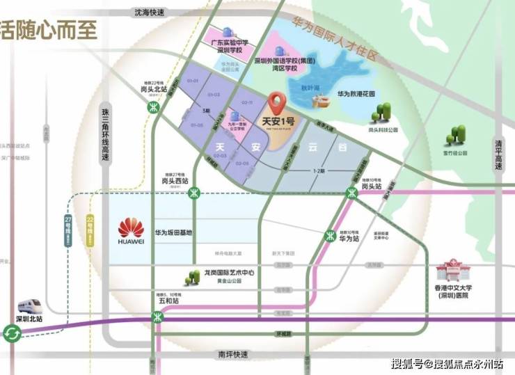 路网方面:临近坂雪岗大道、梅观高速,快速连接福田、罗湖、龙华等核心城区。