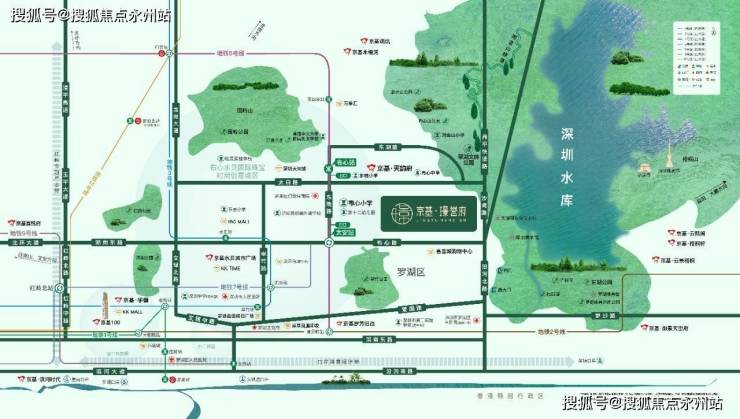 京基璟誉府:靠近深圳水库,是罗湖乃至整个深圳都较为稀缺的湖景住宅,并且周边公园居多,东湖公园、淘金山绿道、围岭公园、翠竹公园、洪湖公园等都在附近,非常宜居。