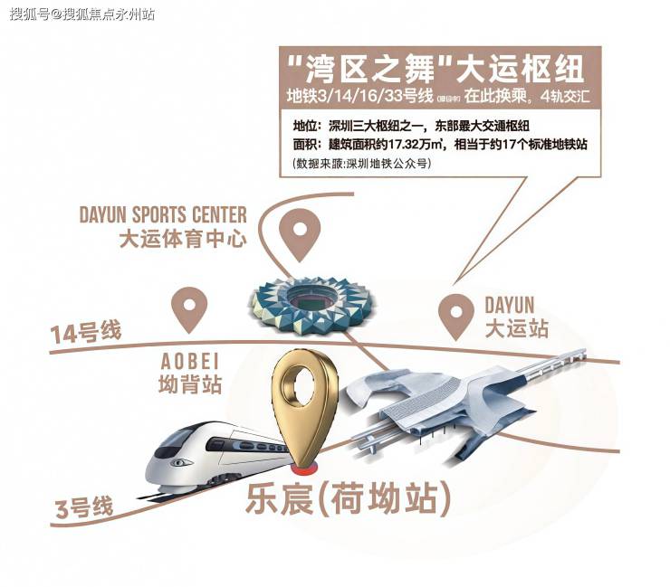 项目距离地铁3号线荷坳站约300米,步行5分钟即可抵达。乘坐地铁1站可达大运站,该站是深圳东部最大的综合交通枢纽,可换乘3号线、14号线、16号线等多条地铁线路。14号线已开通,16号线一期已开通,二期预计2025年开通,深大城际(33号线)计划2026年开通,届时大运站将成为四线换乘枢纽。