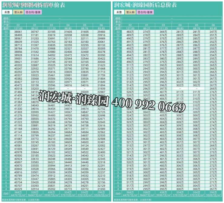 单价区间:折后单价约2.9-4.0万 /㎡,其中84㎡户型单价最低约2.83万元/㎡起。
