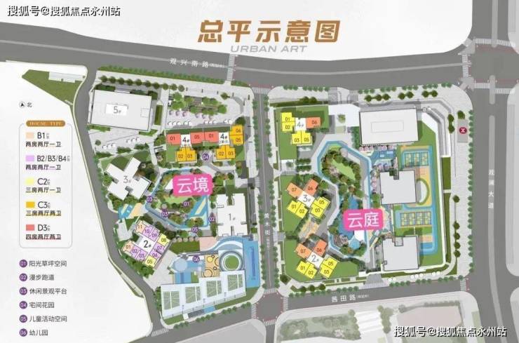 栋数:4栋住宅+1栋幼儿园+1栋酒店