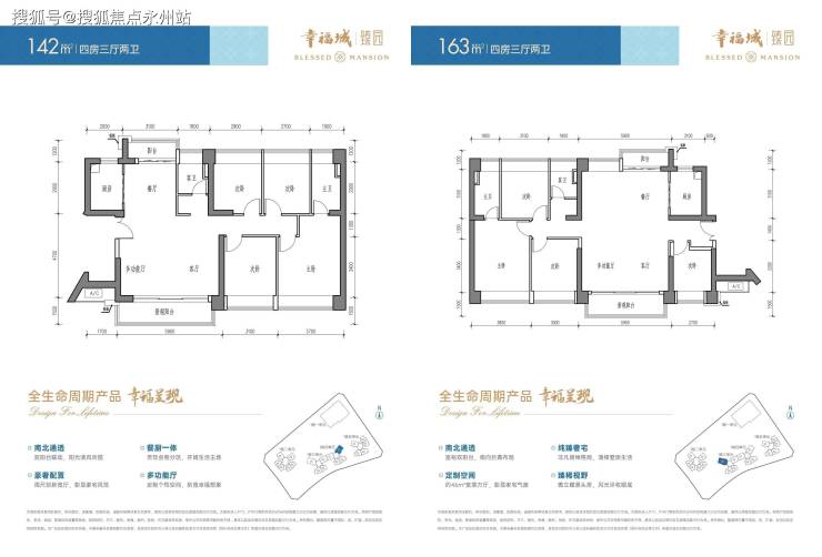 142-163㎡四房三厅两卫(方厅)核心亮点:南北双阳台 + 大平层体验