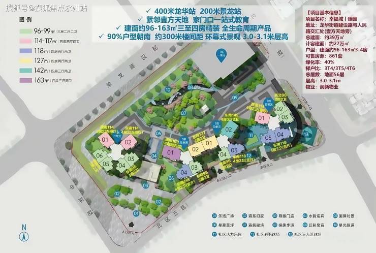 首推的01-01地块中,占地面积约1.93万㎡,建筑面积约23.8万㎡,可计容建筑面积约18.01万㎡,容积率高达8.81,绿化率则达到了40.01%,这里由4栋高达56层的住宅楼组成,其中1栋包含1单元的40层办公楼,2/3/4/5单元的56层住宅楼,规划中还包括一个公交首末站。(深圳龙华幸福城臻园售楼处电话:400-992-0669)