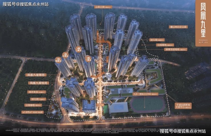 规划有凤凰九里公园和集市公园,其中凤凰九里公园涵盖约10万㎡自然山体公园与山脚约4900㎡人文公园,设置约1公里登山道、各年龄段儿童乐园、休闲健身广场、篮球场、羽毛球场等,满足全龄段休闲娱乐需求。