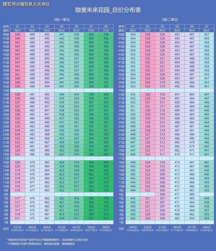 本次推出来的鸿荣源珈誉未来花园,由鸿荣源集团操盘,总占地面积约7.28万㎡,总建筑面积约55.23万㎡,计容建筑面积约34.25万㎡,容积率4.39,绿化率35%,共由9栋总高47-48层的超高层住宅组成,其中1栋1/2/3单元,2栋1单元住宅47F,2栋2/3单元住宅48F,3栋1/2单元住宅48F,4栋住宅48F。