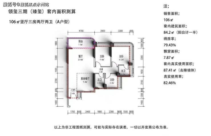 项目约320套房源户型分2个面积段 3种户型,其中106-107㎡ 3房2卫户型约240套,128㎡4房2卫 约80套,赠送后约92%-97%的超高使用率。(户型仅供参考)