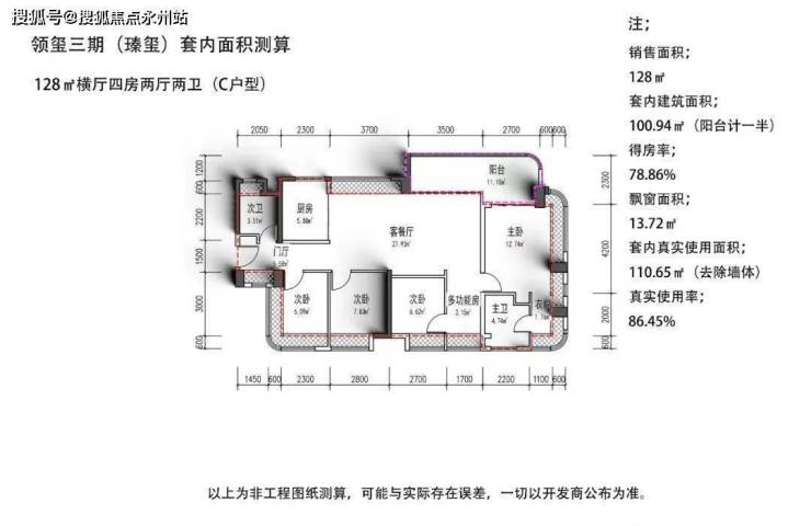 前海招商瑧玺将推出共320套,建面约106/107㎡3房约240套和128㎡4房 约80套,赠送后约92%-97%的使用率,且还是3.27低密容积率。