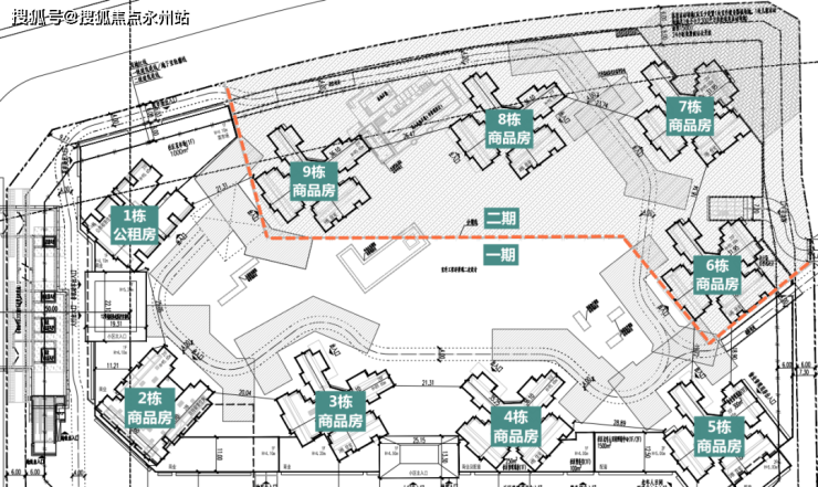 根据规划,会展湾雍境花园总建筑面积154163㎡,计容建面86867㎡,其中住宅80896㎡,商业1500㎡,公共配套设施3150㎡,机动车位1908,容积率4.08,由9栋建筑主体组成,总房源2043户(含712户保障房),可售房源有1331套,项目分为一二期开发,其中一期由1/2/3/4/5栋组成,其中1栋为公租房(靠近地铁),2-4栋均为商品房,共1263户(含保障房712户);二期由6/7/8/9栋组成,共780户,二期均为商品房。