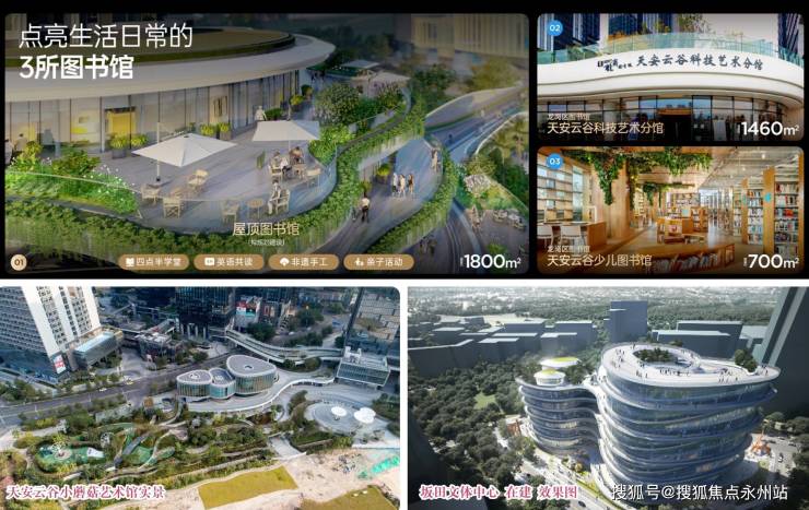 项目楼下有3所图书馆(屋顶图书馆、龙岗图书馆天安云谷科技艺术分馆、天安云谷少儿图书馆)+1所文艺中心(小蘑菇艺术馆)+1处星耀剧场;同时距离坂田文体中心步行约2500米。