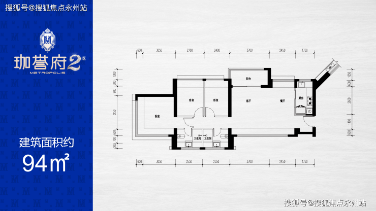 | 约96㎡(横厅)三房两厅两卫 折后总价约483-505万