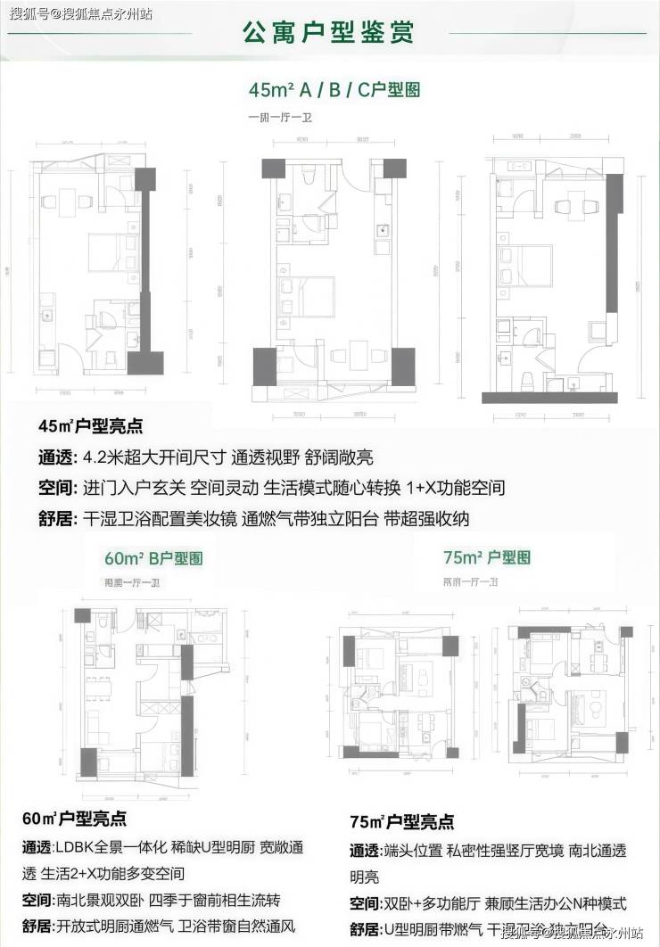 主力户型:45-75㎡一至两房,均为70年产权公寓,民水民电通燃气,带阳台设计,可积分入学。