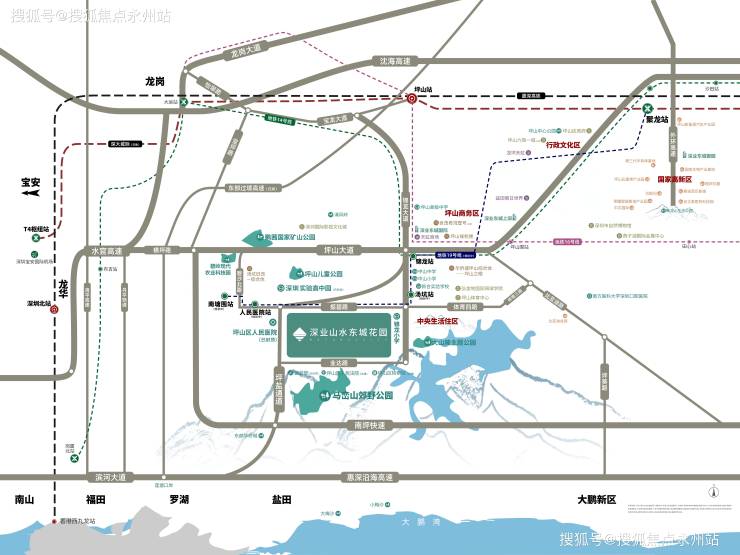 深业山水东城位于坪山区锦龙大道和振碧路交汇处西南向,碧岭和沙湖交汇相融的片区内。项目面向坪山中心大腹地,地块东侧紧邻锦龙小学,西侧为坪山区人民医院(建设中),南面背靠马峦山郊野公园(约31.66平方公里),西北方向为深圳实验学校高中园,西南方向为坪盐-南坪转换立交。_售楼处_Vip Tel:400-992-0669 中介勿扰
