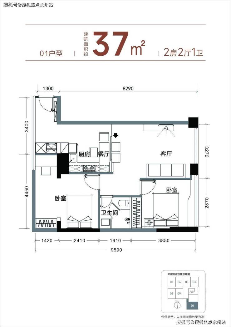 【产品面积】约37㎡小两房(实际套内使用面积接近54㎡)
