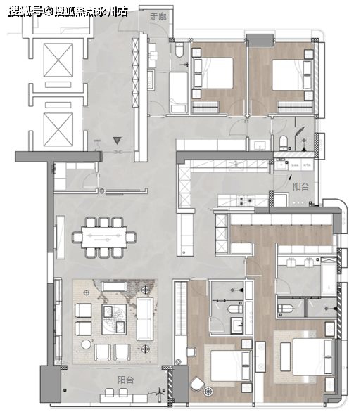 住宅:建面约253平奢配一户两部电梯的专属电梯厅入户格局