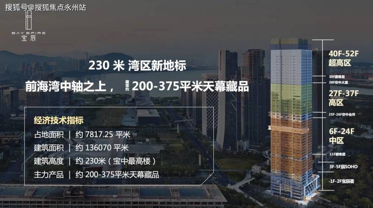 项目建筑高度约230米,是前海湾摩天建筑群中又一道独特风景线