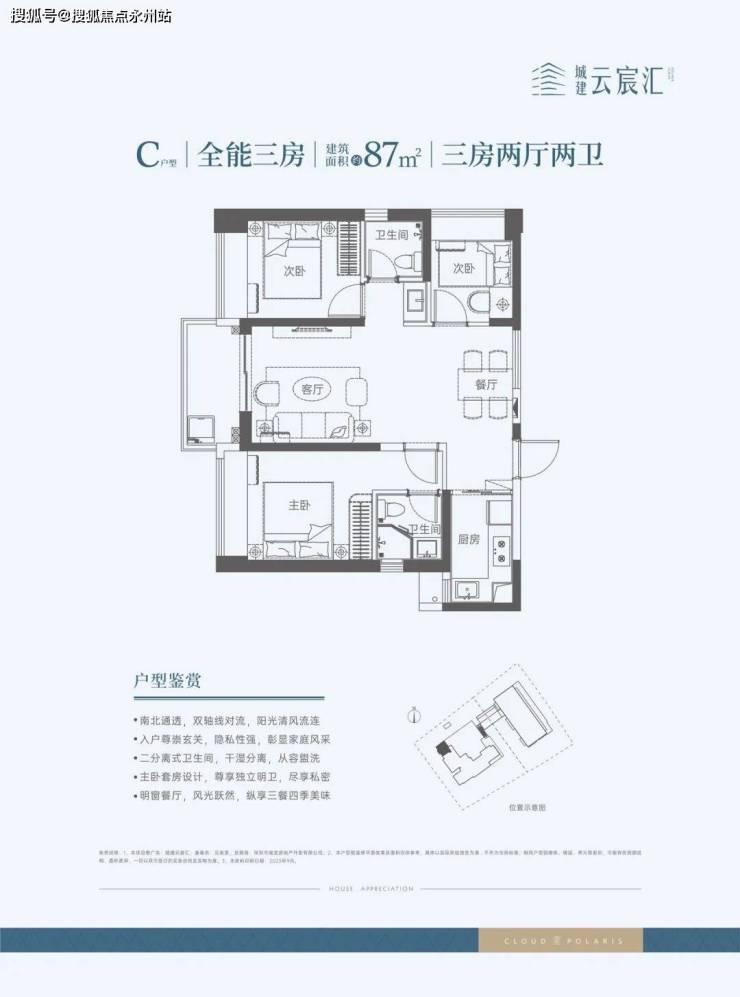 臻稀品质户户朝南:建面约65-113㎡2-4房质感臻宅,国企匠心云感高阶人居,打造户户朝南超前性设计,方正通透格局,空间利用率高,室内阳光流连,清风婉转,揽享全能云感居住体验,小面积低总价,更易上车,未来资产稳健优享。