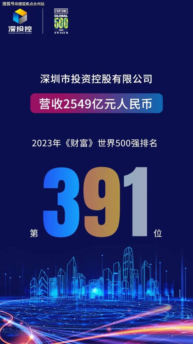 而深投控成立于2004年,截止2022年底,深投控营收2549亿元人民币,在2023年《财富》世界500强中,位列第391位,也是深圳国资委直管企业中唯一跻身世界500强的。(来源:深圳国资)
