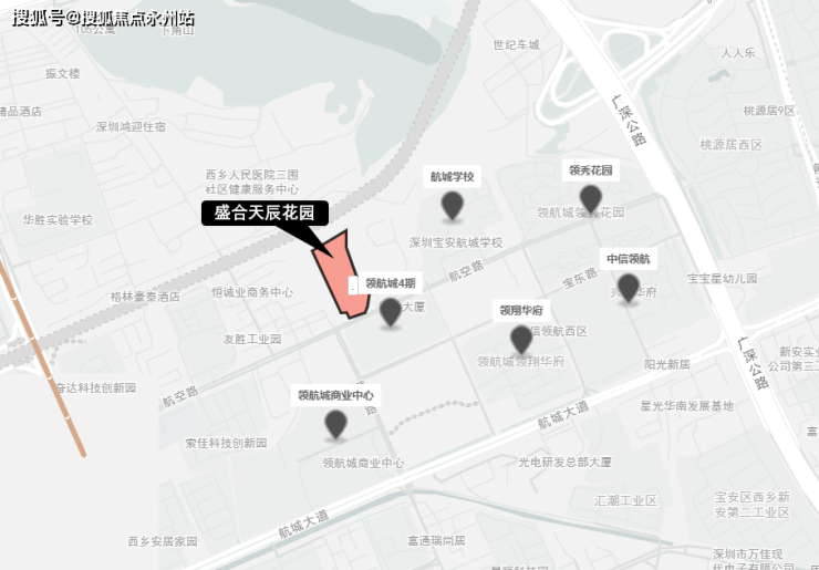 盛合天宸家园宝安区航城街道黄田路和航空路交汇处东北侧,据现场施工牌显示,项目用地面积约1.4万㎡,总建面约7.4万㎡,规划建设4座29层的住宅塔楼,竣工日期为2021年10月9日。