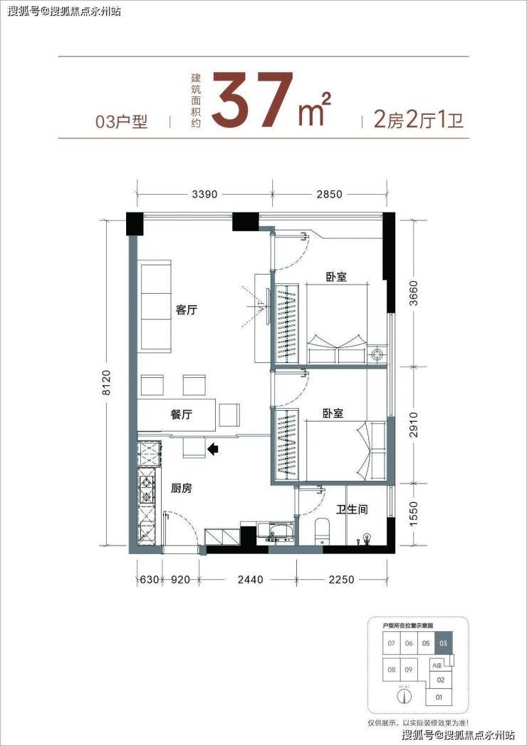 主力为37㎡两房,实际室内实用面积54-63㎡,实际使用率达145%-170%
