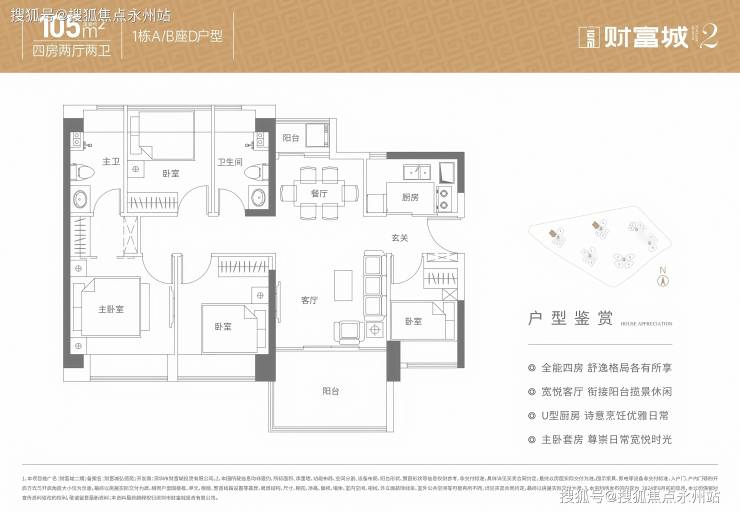 功能:U 型厨房,得房率约88.36%(含赠送),阳台主朝东南、西北、东北。