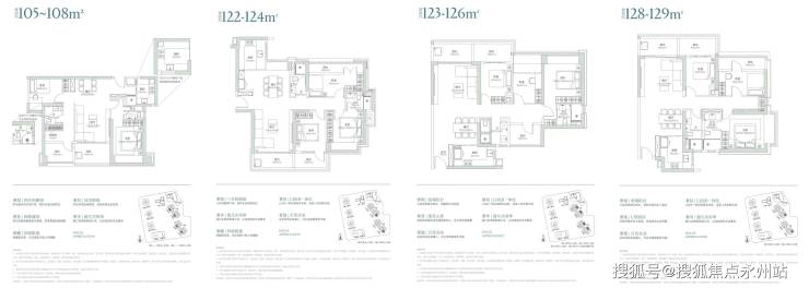 刚需改善型(105-145㎡):包含105-108㎡3室2厅2卫、122-129㎡3室2厅2卫、140-145㎡4室2厅2卫等户型。户型设计方正,动静分离,配备独立玄关提升隐私性;客厅与餐厅无缝衔接,主阳台朝南,采光优越;多为2卫设计,解决家庭日常使用冲突,适合三口之家或改善型刚需群体。