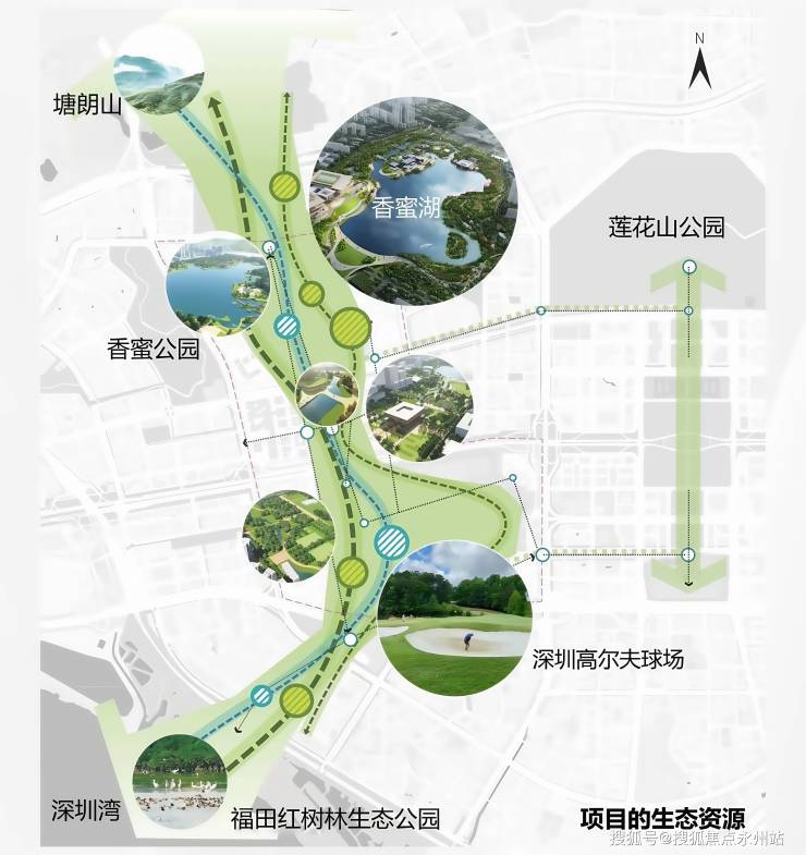 核心区位:位于深圳市福田区香梅路与新闻路交汇处东北角,隶属景田片区,紧邻香蜜湖新金融中心,距市民中心约1.4公里,夹在香蜜湖、车公庙、福田CBD三大核心板块之间。