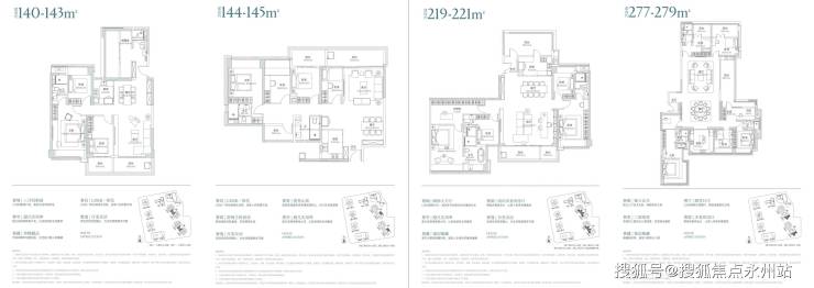 分户型总价:105㎡三房折后总价1233-1339万(单价约11.7-12.8万/㎡);124-128㎡四房三卫双套间1372-1614万(单价约11-12.6万/㎡);143㎡四房三卫双套间1765-1904万(单价约12.3-13.3万/㎡);220㎡五房四卫三套间3053-3164万(单价约13.9-14.4万/㎡);280㎡六房五卫四套间3839-3980万(单价约13.7-14.2万/㎡);另有484-485㎡10室户型,总价9021万起.