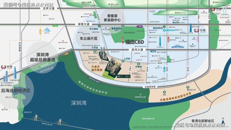 项目于福田区南部,大金沙片区,属于深圳福田超大规模的城市更新区域,位于福荣路与上沙村路交汇处,地处福田大金沙片区,政府投入了300亿,后续将规划总建面350万㎡的住宅+412万㎡的产业空间,也是深圳核心区域内目前唯一一个产城一体化的城市更新单元。(深圳福田中州湾迎海售楼处电话:400-992-0669)