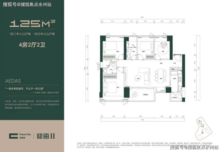 产品设计:主力户型为96-125㎡3-4房,4梯6户,层高3.15米,西南向户型可直面深圳湾海景,部分房源赠送0.65米加宽飘窗,得房率约75%-80%。