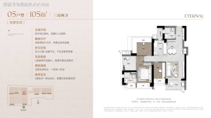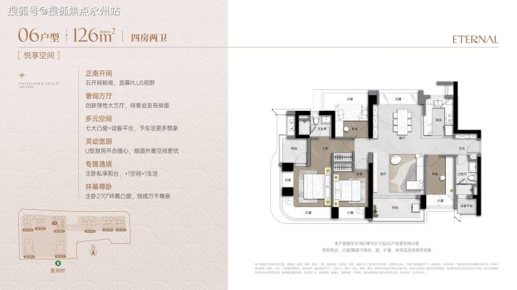 空间创新:主卧三面采光,连通主卫、次卫与次卧的飘窗打破传统隔断,营造开阔空间感。