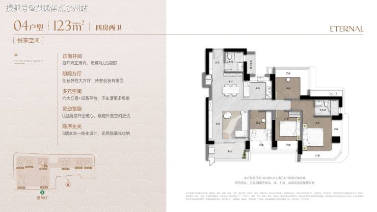 空间设计:四房格局方正,次卧连通景观阳台,适合注重居住格调的改善家庭。