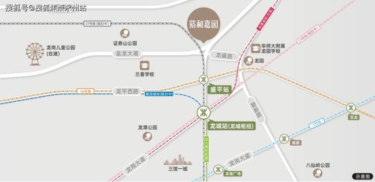 项目近邻16号线盛平站,同时周边还规划了地铁31号线:另外,在建的龙城枢纽站规划为地铁21号线。深惠城际线、塘龙城际线、地铁31号线四线交汇,届时项目可于此快速换乘通达全城。