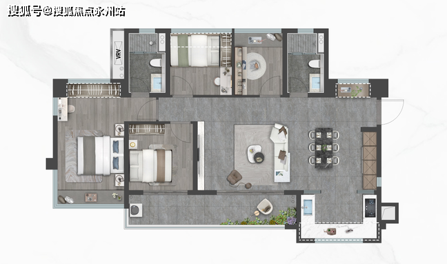 奢享人居:80㎡户型1.9卫概念植入,89㎡户型主卧独立衣帽间设计,全敞餐厨空间LDK一体化,提升奢享空间;120㎡户型14.7m超长全南采光,主卧270°环绕式观景,中西双厨概念,打造无界奢宅