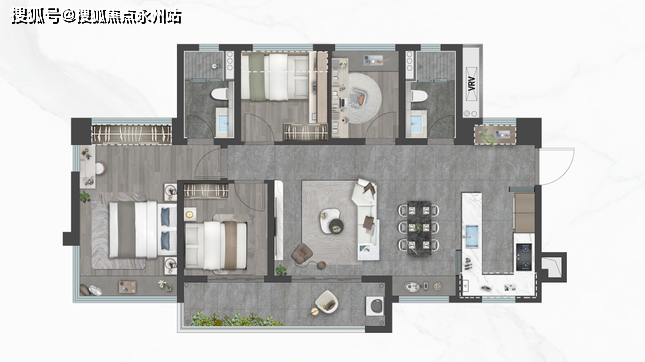 御雲:建面约80㎡,三室两厅1.9卫,创新型1.9卫设计,臻享从容生活