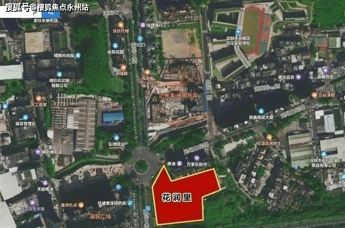 花润里位于深圳西部光明街道观光路北面富民大道路东面(与龙华观澜一路之隔),推广名为:《花润里》原白花社区征地返还用地地块二,规划总建筑面积8.25万㎡,共建设3栋32层住宅、1栋4层幼儿园、1栋4层商业裙房以及社区健康服务中心、物业用房及地下室等。是集住宅、商业、社康、老年日间照料中心等于一体的综合体建筑。
