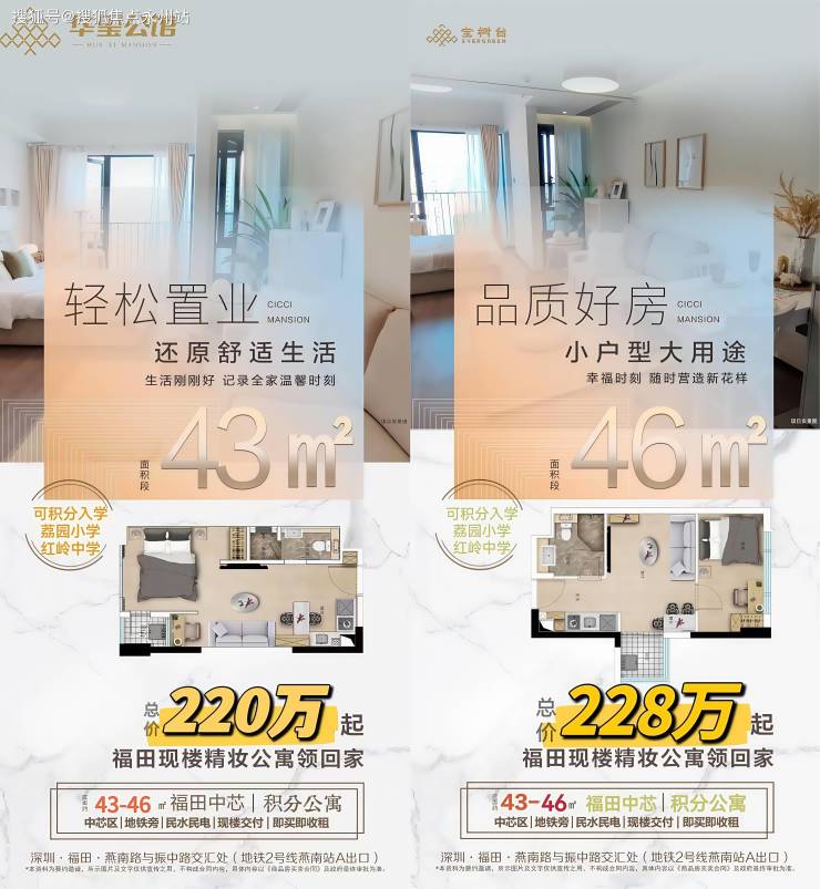 可积分入学 ➡ 荔园小学+红岭中学✦建面约43㎡/46㎡ 精装公寓