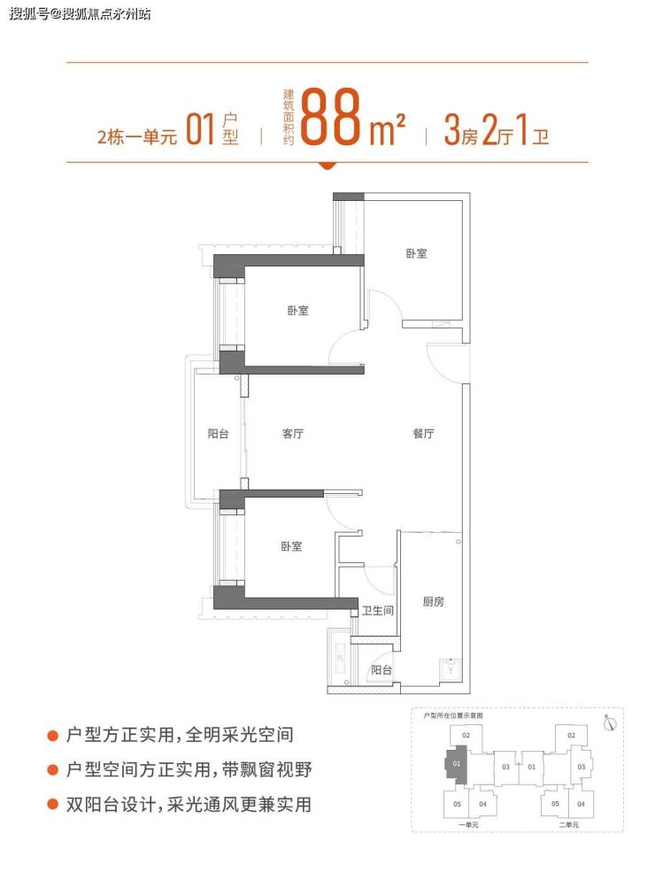 悦见倾湖誉府:2栋一单元和二单元,3梯5户,总层高44层,建面约88㎡三房一卫,96-99㎡三房两卫,102㎡三房两卫