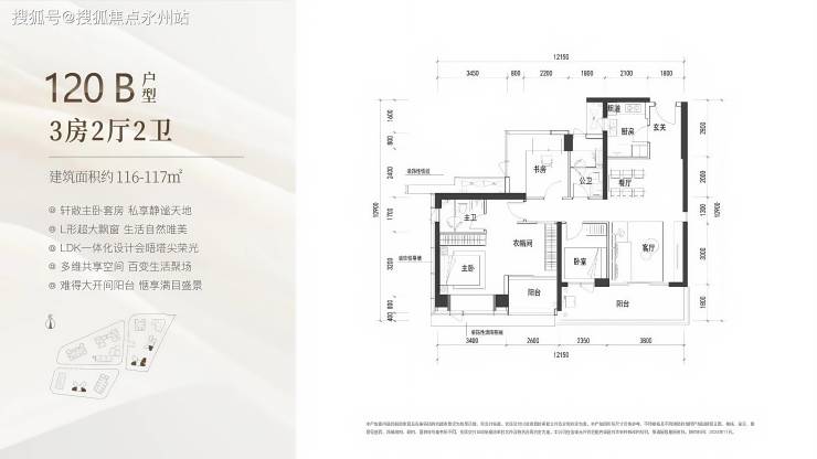 116-117㎡的3房2厅2卫,B户型(2栋4单元01.02.05/3栋2单元02/05户型),设计的是经典竖厅格局,客厅3.8米开间,LDKB一体化设计,3个卧室分别做到了主卧28.6㎡/次卧9.6㎡/次卧7.05㎡(包含墙体飘窗),客厅连接次卧出6.15米长的宽景大阳台,U型厨房,卫生间干湿分离,得房率约90%(包含赠送),东南或正东朝向。其实也可以改4房。(深圳南山翰熙典居售楼处电话:400-992-0669)